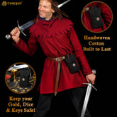 Mythrojan Belt Bag, ideal for SCA LARP reenactment & Ren fair, Handwoven Canvas 100% Cotton , Brown , 7.2 ”× 4.7 ”