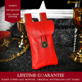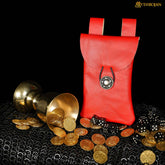 Mythrojan Leather Belt Bag, Ideal for SCA LARP Reenactment & Ren fair, Full Grain Leather, Red , 7.2 ”× 4.7 ”