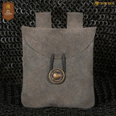 Mythrojan Suede Belt Bag, ideal for SCA LARP reenactment & Ren fair, Suede Leather, Grey, 5.5”×5.1”