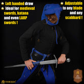 Mythrojan Medieval Right and Left Hand Leather Sword Frog Universal Rapier Broadsword and Cutlass - Blue, Large - 10" X 10"