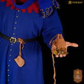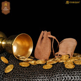 Mythrojan Pair of Medieval Drawstring Pouches, Ideal for SCA LARP Reenactment & Ren fair - Suede Leather, Brown