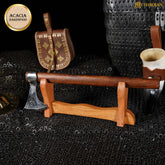 ⭐ COMPACT SIZE 13.5” X 5.5” but STABLE ENOUGH TO SHOW YOUR SWORDS IN THEIR BEST LIGHT: Is there anything better than welcoming good friends for a festive banquet or a memorable wedding and share a nice beer surrounded by your favorite swords proudly displayed on their elegant wooden stands, like distant echoes of a long gone past?