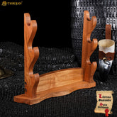 Mythrojan Solid Wood Sword Stand Medieval Sword Wall Mount Samurai Sword Display Stand Katana Sword Holder Gladiator Sword Wall Display Crusader Sword Stand Knife Stand for Display - Three Tier Sand