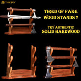 ⭐ SOLID HARDWOOD & TRADITIONAL CRAFTMANSHIP: Made from the highest quality wood available. Our carefully crafted sword stand will delight even the most demanding connoisseur! FORGET ABOUT THE POOR PERFORMANCES OF FAKE WOOD STANDS! We are talking about SOLID HARDWOOD here!