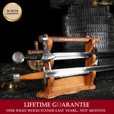 ⭐ 17” X 14" WIDE : PERFECT SIZE TO SHOW ALL YOUR SWORDS IN THEIR BEST LIGHT. Is there anything better than welcoming good friends for a festive banquet or a memorable wedding and share a nice beer surrounded by your favorite swords proudly displayed on their elegant wooden stands, like distant echoes of a long gone past?