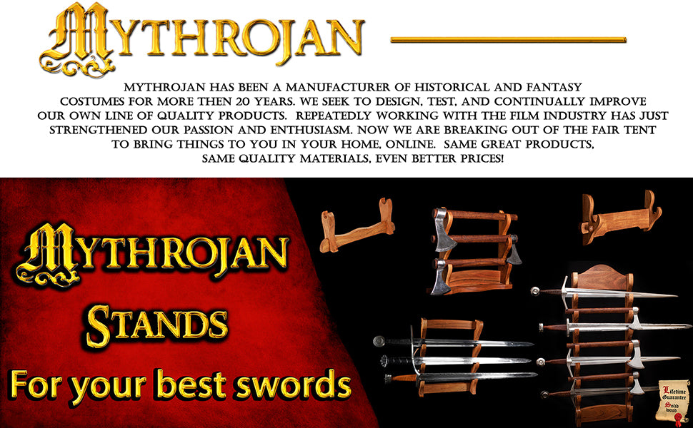 You can purchase high-quality samurai sword stands directly from Mythrojan's online store. We offer a wide selection of sword display stands, including wall-mounted and tabletop models, perfect for showcasing your katana or any other type of sword.