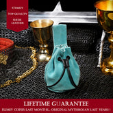 Mythrojan Medieval Drawstring Belt Bag, Ideal for SCA LARP Reenactment & Ren Fair, Suede Leather, Aqua 6”×5”