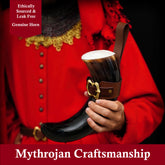 Mythrojan THE LOYAL SOLDIER - Viking Drinking Horn with Leather Holder Authentic Medieval Inspired Viking Wine/Mead Mug - Polished Finish - 600 ML / Brown