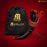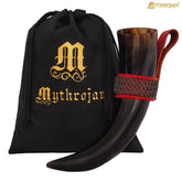 Mythrojan THE WITCHER COMPANION Viking Drinking Horn with Red Leather Holder Authentic Medieval Inspired Viking Wine/Mead Mug - Polished Finish