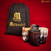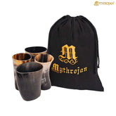 Mythrojan Viking Drinking Horn Glass, Norse Medieval Short Glass in Set of 4