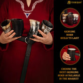 ⭐ 100% LEAK FREE & ETHICALY SOURCED GENUINE HORN ♦♦ Our drinking horns mugs are individually made by hand, highly polished and sealed to keep the horn beautiful and leak free for years to come. Each one is unique and the result of patient craftsmanship by skilled horn makers using only 100% real horn, carefully chosen for their beauty, strength, and sturdiness. As with any natural product, the color and shape will have natural variations. NOT TWO ARE THE SAME!