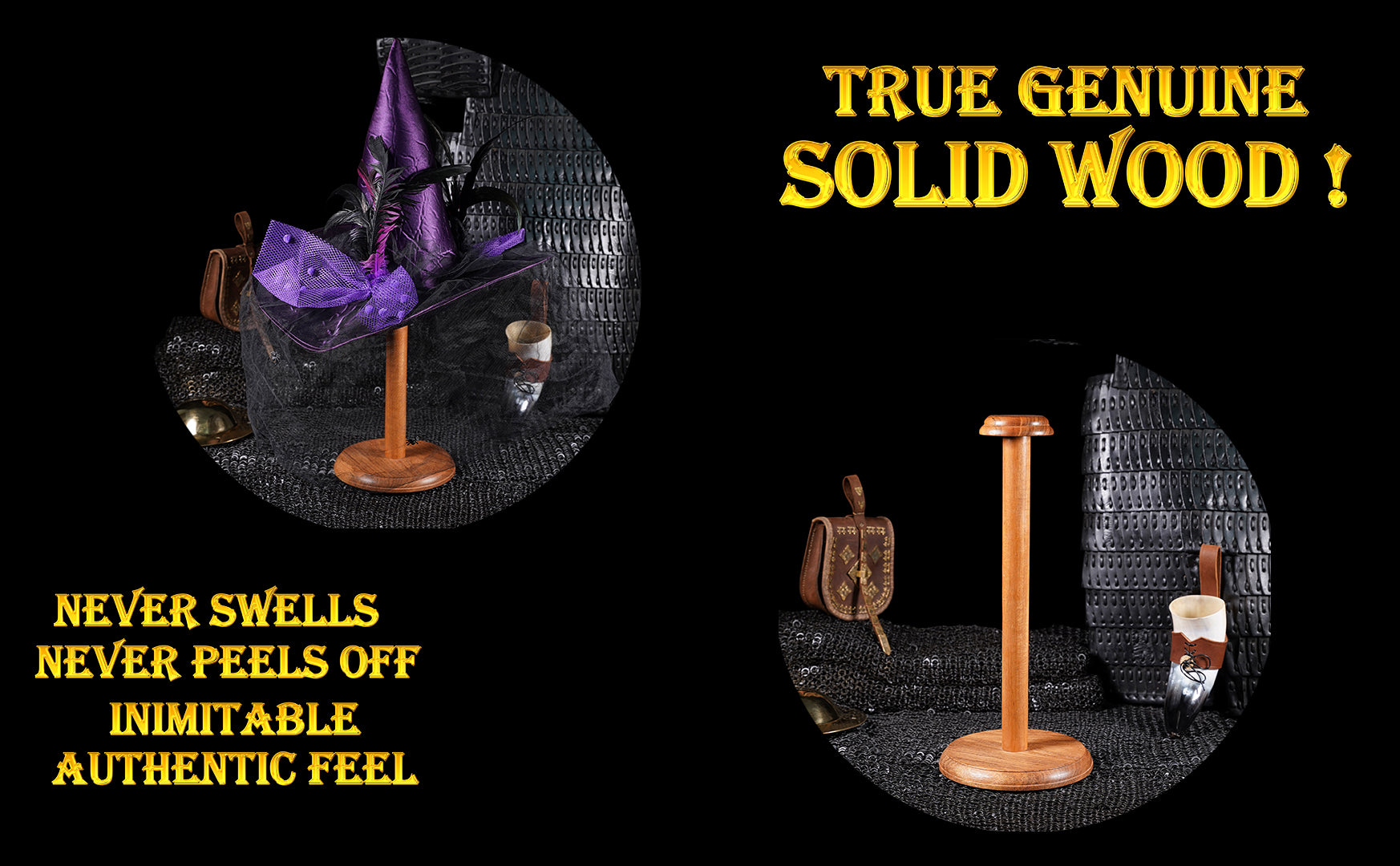 ⭐ 18 INCHES TALL TO SHOW YOUR HELMET IN ITS BEST LIGHT: Is there anything better than welcoming good friends for a festive banquet or a memorable wedding and share a nice beer surrounded by your favorite helmets proudly displayed on their elegant wooden stands, like distant echoes of a long gone past ?