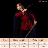 The attached hood adds a touch of mystery and fantasy flair perfect for witches, rangers, knights, or nobles. Beyond its striking silhouette, it also offers real protection against wind and chill, making it as practical as it is stylish for outdoor events and cool evenings.